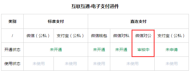 微信直連對(duì)公進(jìn)件簽約完成權(quán)限開通后: