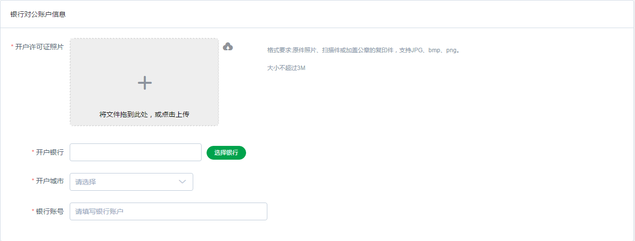 2.企業(yè)的營業(yè)執(zhí)照和開戶行的名稱必須一致否則微信審核不予通過。