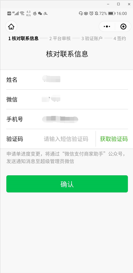 1.在賬戶待驗(yàn)證階段,打款時(shí)打款信息填寫錯(cuò)誤,導(dǎo)致微信審核不過。