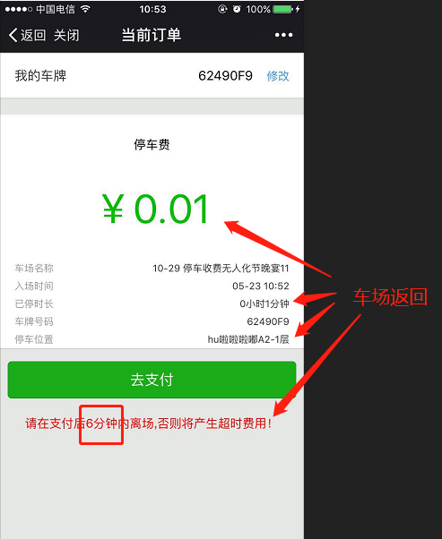 車主描上述預(yù)付二維碼,獲取當(dāng)前訂單詳情。