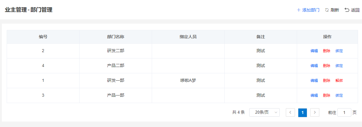 如果來訪申請(qǐng)的指定部門,可以給該部門綁定指定的審核人員,在車場(chǎng)配置的私有公眾號(hào)里進(jìn)行審核。點(diǎn)擊右上角“部門管理”,進(jìn)入綁定部門頁面。完成添加部門、綁定審核人員的微信等操作。