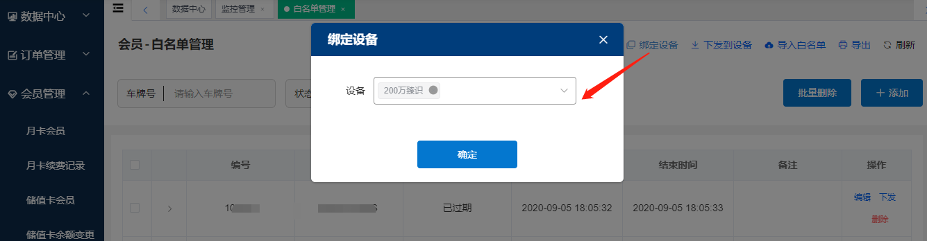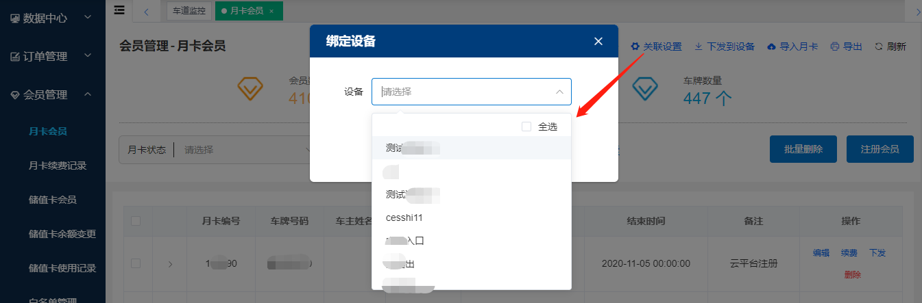 1、車場(chǎng)后臺(tái)綁定需要接收該信息的設(shè)備
