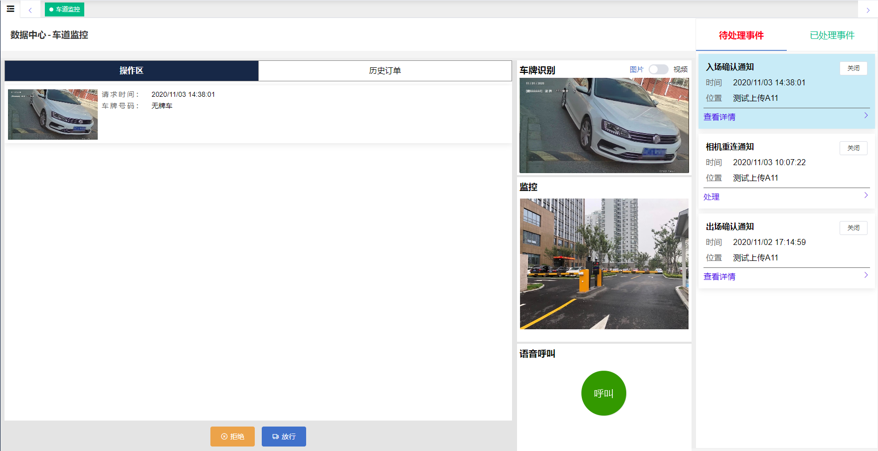 如果車主行至當(dāng)前設(shè)備處,遇到車牌無(wú)法識(shí)別、支付后不抬桿、對(duì)訂單金額有疑問(wèn)等情況,均可發(fā)起語(yǔ)音呼叫,該呼叫信息會(huì)推送至管轄該通道的管理員處,包括關(guān)注的微信公眾號(hào)消息、安卓手機(jī)APP、小程序、管理員登錄的車場(chǎng)web后臺(tái),都會(huì)受到該呼叫消息。