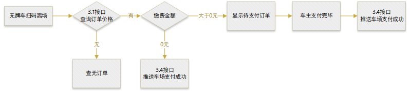 3、無牌車離場(chǎng):泊鏈廠商后臺(tái)生成對(duì)應(yīng)離場(chǎng)通道二維碼,車主用入場(chǎng)掃碼用的軟件掃碼,泊鏈會(huì)推送消息到管理對(duì)應(yīng)出口通道的電腦上請(qǐng)求離場(chǎng)結(jié)算,如無需繳費(fèi)會(huì)自動(dòng)放行,如需繳費(fèi)車主支付完對(duì)應(yīng)費(fèi)用,泊鏈通知車場(chǎng)放行。