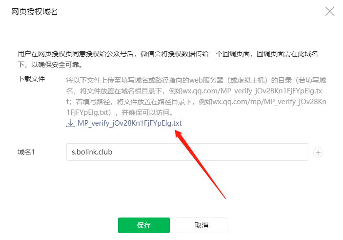 6、公眾號(hào)需要配置網(wǎng)頁(yè)授權(quán)域名 s.bolink.club(下載圖中文件發(fā)給支付平臺(tái)人員進(jìn)行配置)