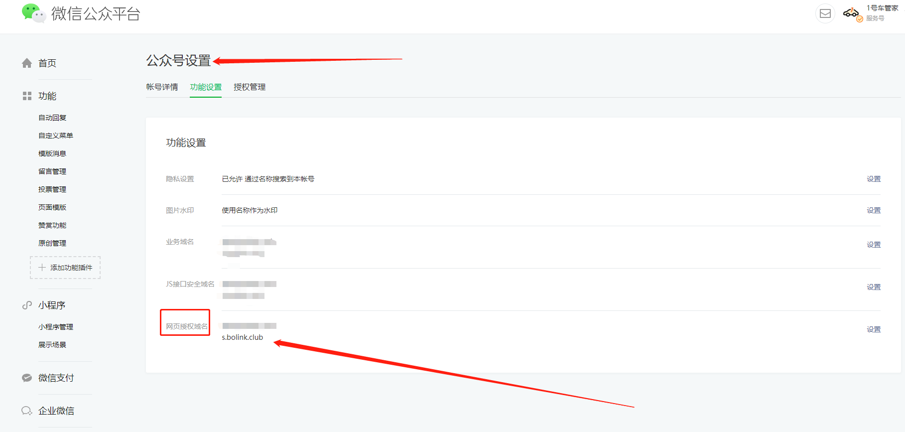 6、公眾號需要配置網(wǎng)頁授權(quán)域名 s.bolink.club(下載圖中文件發(fā)給支付平臺人員進(jìn)行配置):
