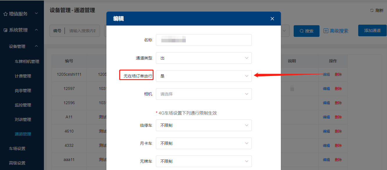 車場(chǎng)可以設(shè)置該出口通道未匹配訂單,直接放行