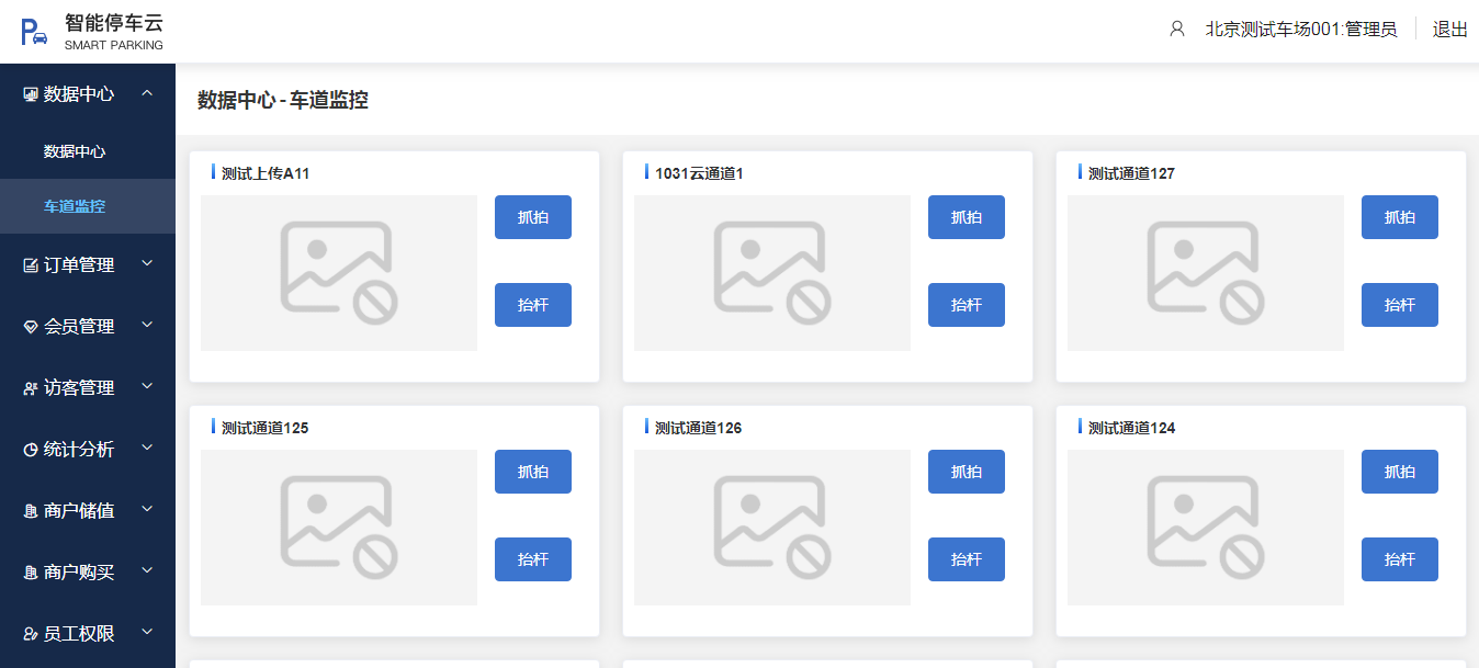車場添加通道信息后,在網頁端或小程序端打開車道監(jiān)控頁面可看到對應通道列表。該頁面可下發(fā)抓拍和抬桿命令給車場系統(tǒng)(分別調用接口3.31和接口3.18),車場收到該消息后,上傳抓拍的圖片(調用接口2.12)或響應抬桿放行。車場上傳抓拍的圖片后,會展示給當前操作人員。
