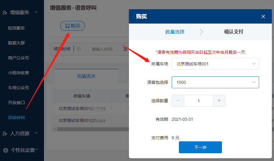 1、車場(chǎng)的上級(jí)廠商給該車場(chǎng)購(gòu)買了語(yǔ)音呼叫的增值服務(wù)