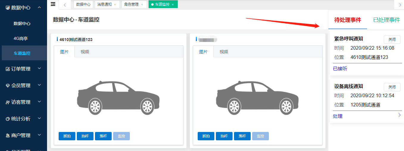 有管理車場(chǎng)通道權(quán)限的員工、車場(chǎng)管理員登錄車場(chǎng)云平臺(tái),查看該車場(chǎng)的通道信息,處理接聽(tīng)呼叫和相關(guān)事件。