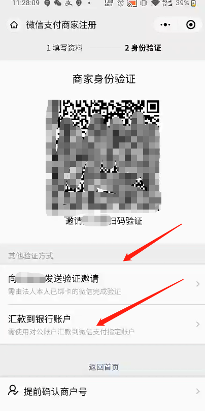 5:選擇邀請(qǐng)法人驗(yàn)證或者匯款到銀行商戶。
