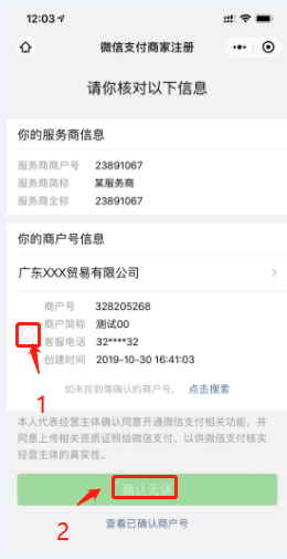 4:核對(duì)商戶信息,點(diǎn)擊“確認(rèn)無(wú)誤”