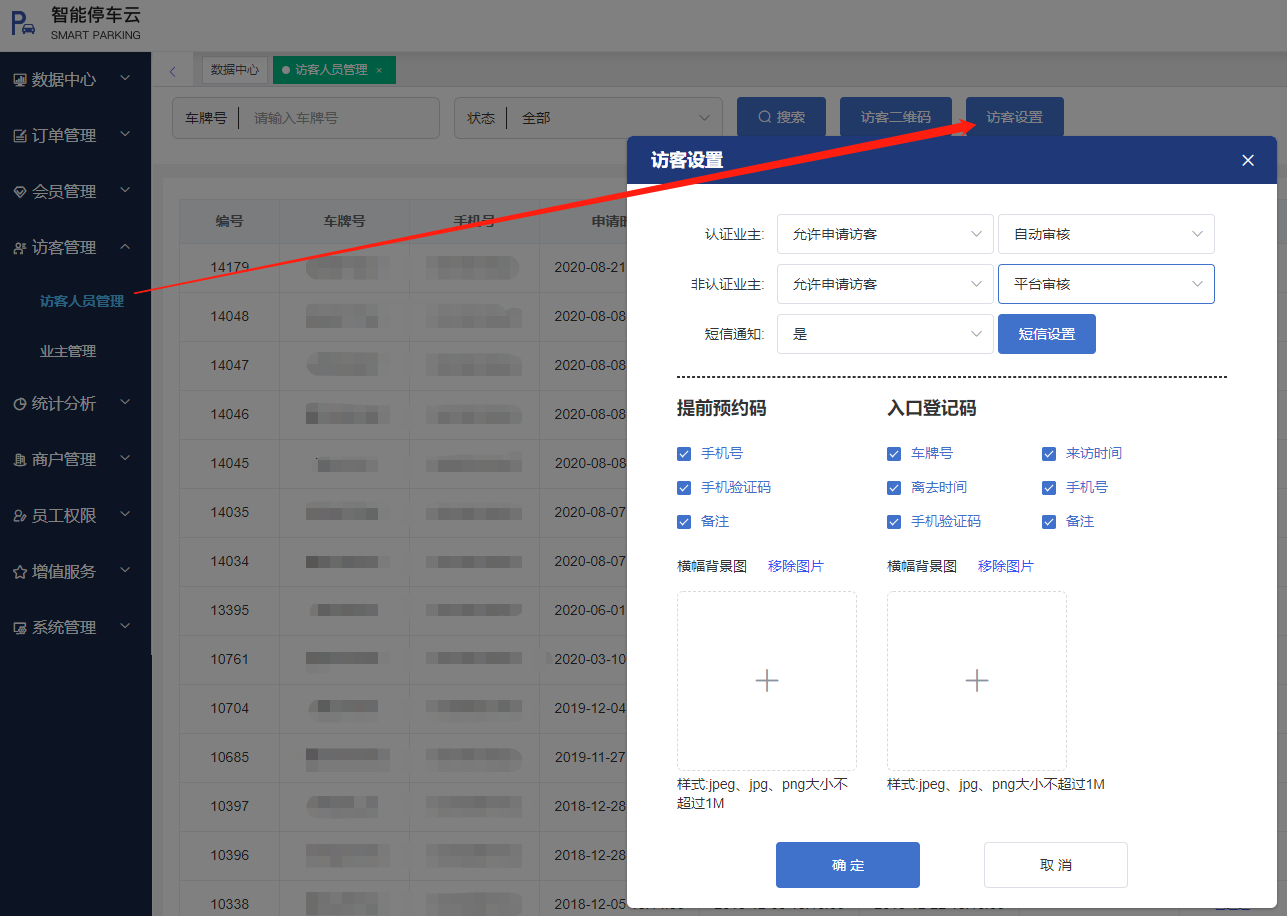 可以針對認證與否的不同業(yè)主,分別設(shè)置是否允許訪客申請,同時設(shè)定來訪申請是否需要車場人員后臺人工審核。
